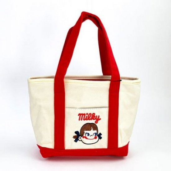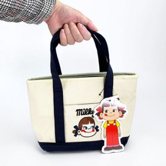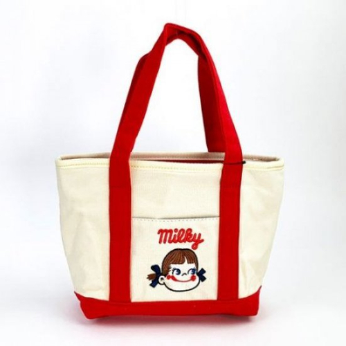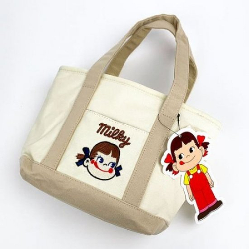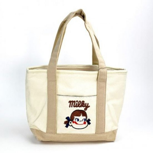 ポケットのペコちゃん刺繍がキュート♪オススメなキャンバス地ミニトートバッグ