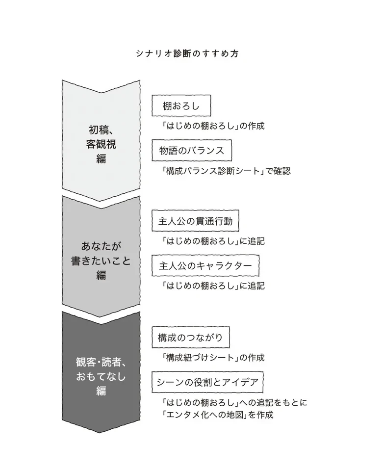 「シナリオ・センター」のロジックをもとに、作品ののびしろを見つけ、魅力を高めるための実践的な方法を解説しています。