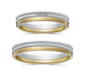 ゴールドとダイヤモンドで、ニューヨークの華やかさを表現。ゴールドリングにフルエタニティを2連づけしているかのようなリュクスなデザイン。2色の境目にラインを入れて、メリハリをつけています。