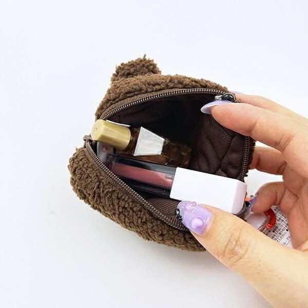 カラビナ付きなのでキーホルダー感覚でバッグにつけることが可能なのもうれしいいポイントです。家の鍵や小銭などすぐに取り出したいものを入れておくとすぐとりだしておけるので便利ですよ。サイズ:6.5cm×9cm×4cm 素材:ポリエステル、アルミ