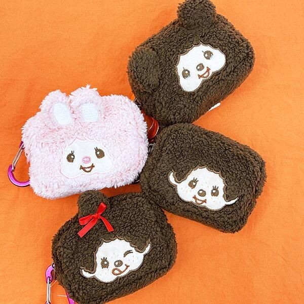 モこちらはモンチッチ のカラビナ付きふわミニポーチです。モンチッチくんの愛らしいお顔がそのままポーチにデザインされています。このつぶらな瞳に愛らしいそばかす、、、なんて癒しのキャラなのでしょう。
