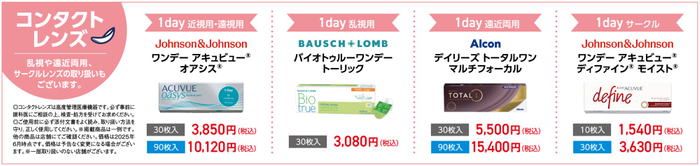 パリミキでは各メーカーのコンタクトレンズを取り揃えております。乱視や遠近両用、サークルレンズの取り扱いもございます。