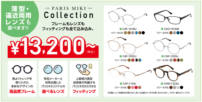 本キャンペーンでは、鯖江生まれのクラフトシップモデルから世界で話題の有名ブランドまで国内外のプレミアムなフレームに、最適視界を体現出来るプレミアムなレンズをセットにしたメガネ・サングラスが最大50%OFFとなるほか、パリミキならではの最適視界カウンセリング「Personal Direction」を通じて、“「あなたに最適な1本」”をご提案します。