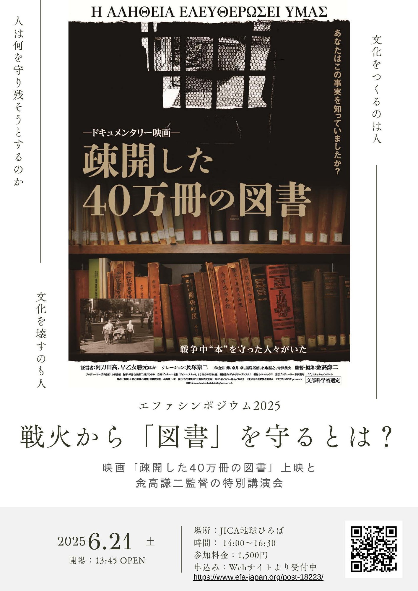 エファが取り組んできた「本を守り、届ける」活動とも重なる本作を通じて、今一度、教育と文化を支える意義について皆さまと共有できれば幸いです。