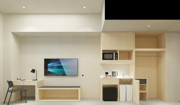 Hotel101の最大の特徴は、482室すべてが同じデザインの「HappyRoom(21平米)」であることです。この均一性が運営コストを劇的に下げ、ゲストの高い満足度を維持します。