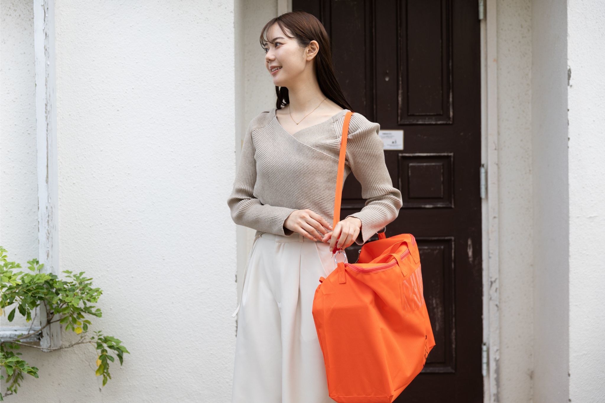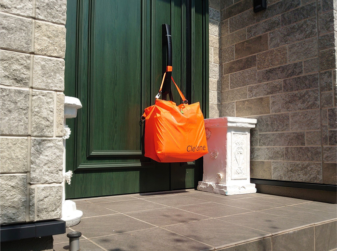 宅配便置き配かばんクリオネバッグのキーワードは「掛ける×繋げる×持ち運ぶ」。ドアノブに掛けて使用する事で集合住宅などでも共有スペースを占有せずに使用する事ができ、繋げて使用する事で従来の宅配ボックスと同様に重量物も受け取れます。また通常のエコバッグとしても使う事ができ、買い物バッグやレジャーなどのエコバッグとしても使う事ができます。