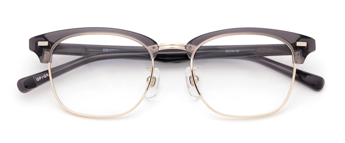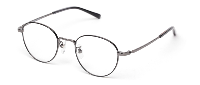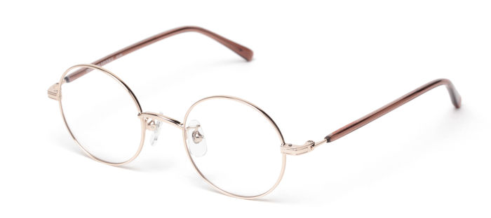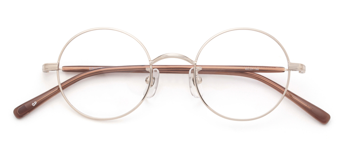 ビンテージメガネの王道ラウンドメタル。テンプルは芯が透けて見えるクリア系アセテート生地を使用した長モダンを採用しました。