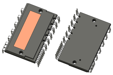 基板上に直接チップなどの部品を搭載できるDBC(Direct Bonding Copper)構造を採用することで、パワーチップを高密度で実装しています。温度検出用のサーミスタも内蔵しています。
