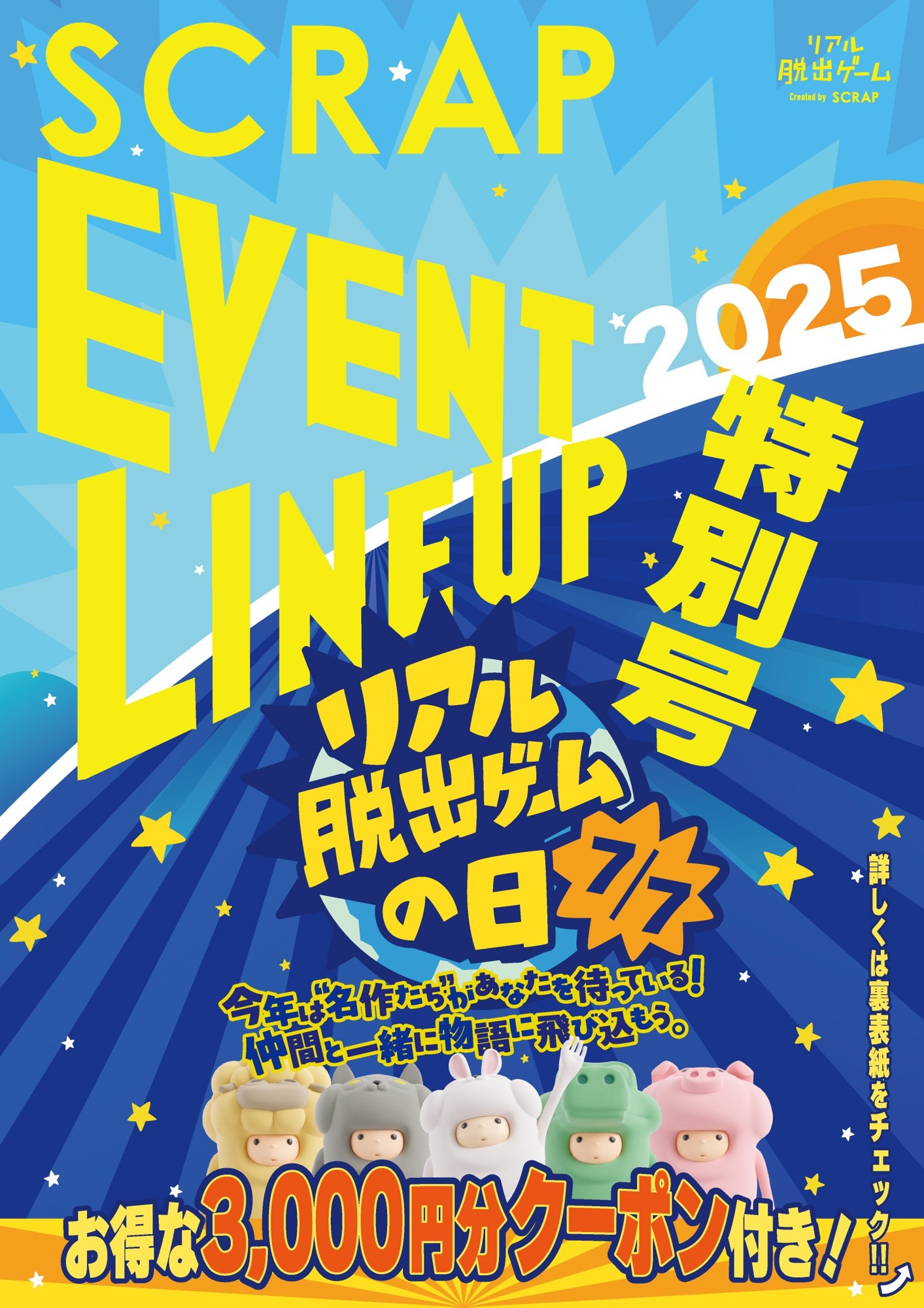 2025年7月1日(火)〜2025年7月31日(木)の1か月間限定で、「リアル脱出ゲームの日2025」を記念したイベントラインナップ特別号を全国のリアル脱出ゲーム店舗で配布します。