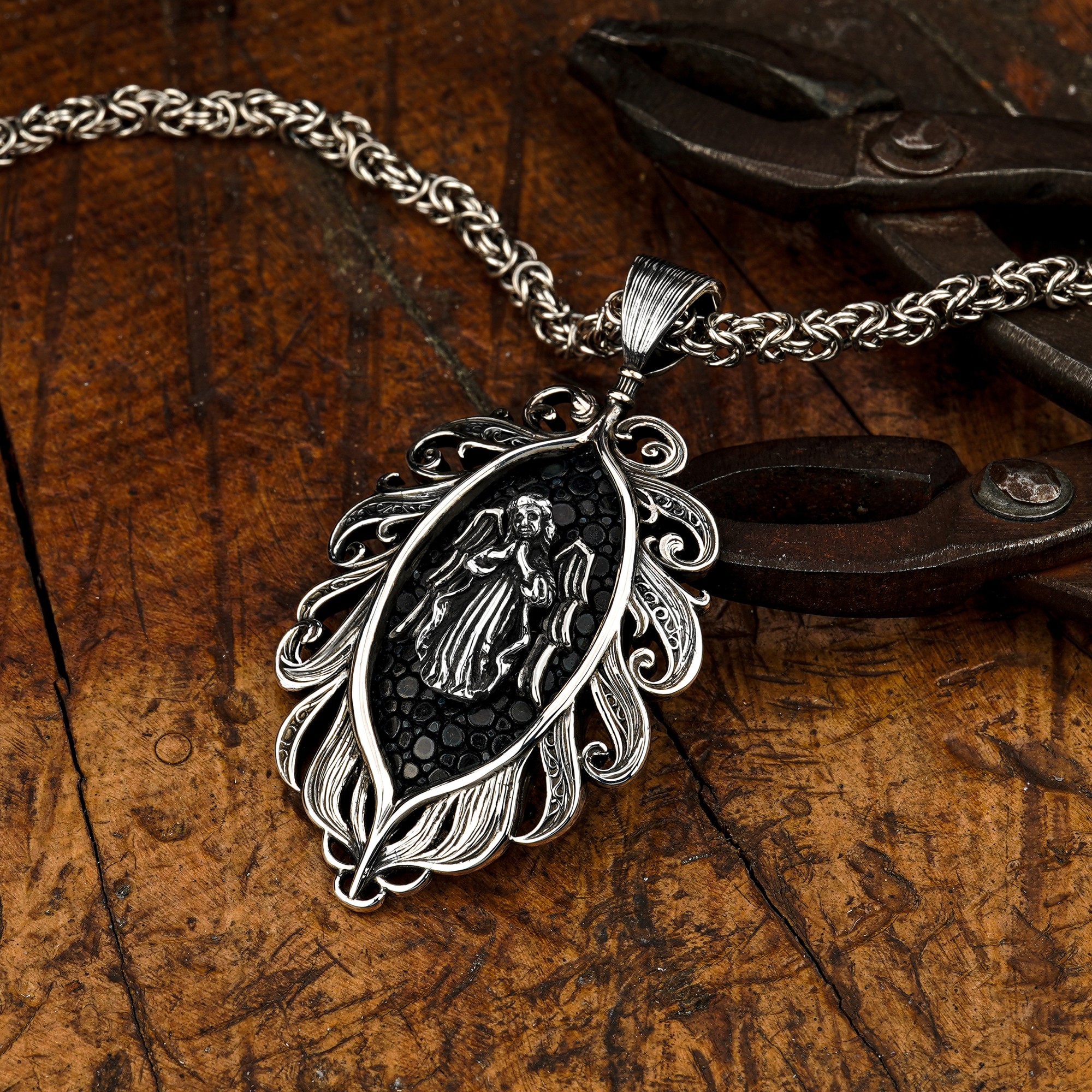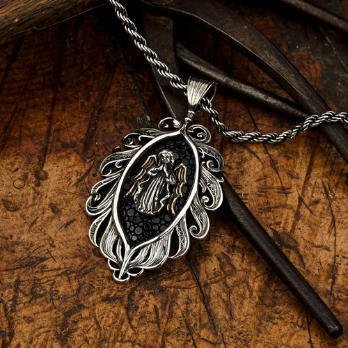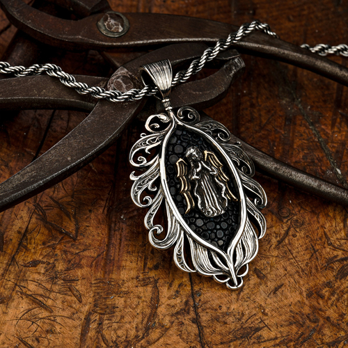 ・JLTP148Gagl-Sry:エンブレイスフェザーインレイペンダントw/ガーディアンエンジェルw/スティングレイ/¥154,000(税込)