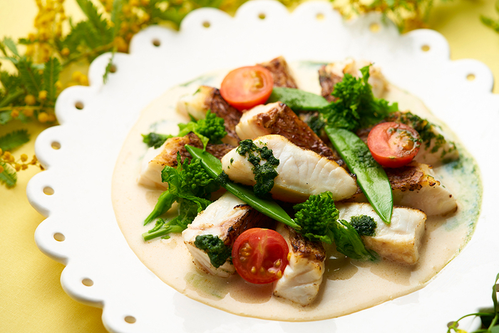 温製料理は春の旬食材を随所にちりばめた品々が魅力。「真鯛のポワレ」や「新じゃがと砂肝のアヒージョ」など、春だから味わえる素材の味や食感を存分にご堪能ください。