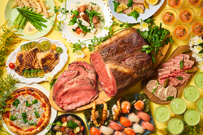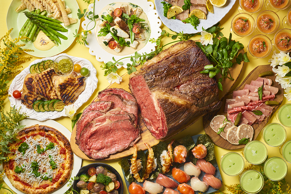 今回のディナー&スイーツブッフェは「国産牛ローストビーフ」を始めとする豪華食材と春の旬食材をふんだんに使用した、ホテルブッフェだからこそ味わえるものばかり。春の息吹を感じるお料理や、春らしい華やかなスイーツたちをごゆっくりお楽しみください。