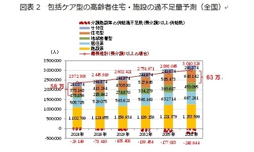 ●2024年、要介護3以上の重度要介護者に対して、58万人分の包括ケア型の高齢者住宅・施設が不足