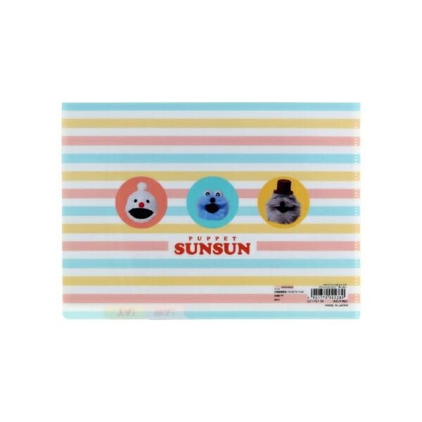 こちらは、パペットスンスン A5クリアファイル3ポケットです。ボーダーが目を引くポップで楽しげ名スンスンたちに見ているだけでこちらも楽しくなってしまいそうです。サイズ:22cm×16cm×0.1cm 素材:PP