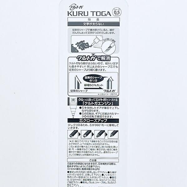 クルトガのシャープペンシルは芯が回ってトガりつづけるので文字が太くならないのが特徴です。お勉強のお供にぴったりな定番文具です。【芯径:0.5mm】サイズ:14.2cm×1cm×1.4cm 素材:PC樹脂