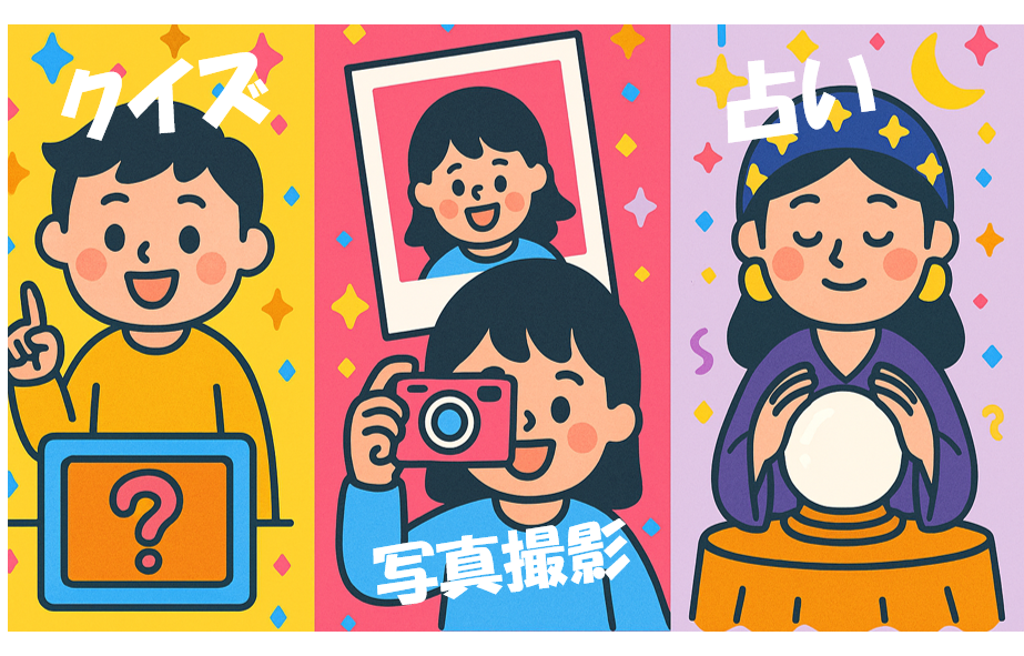 例:自治体の歴史・名所・有名人に関するクイズ、アニメイベントでの作品関連クイズ