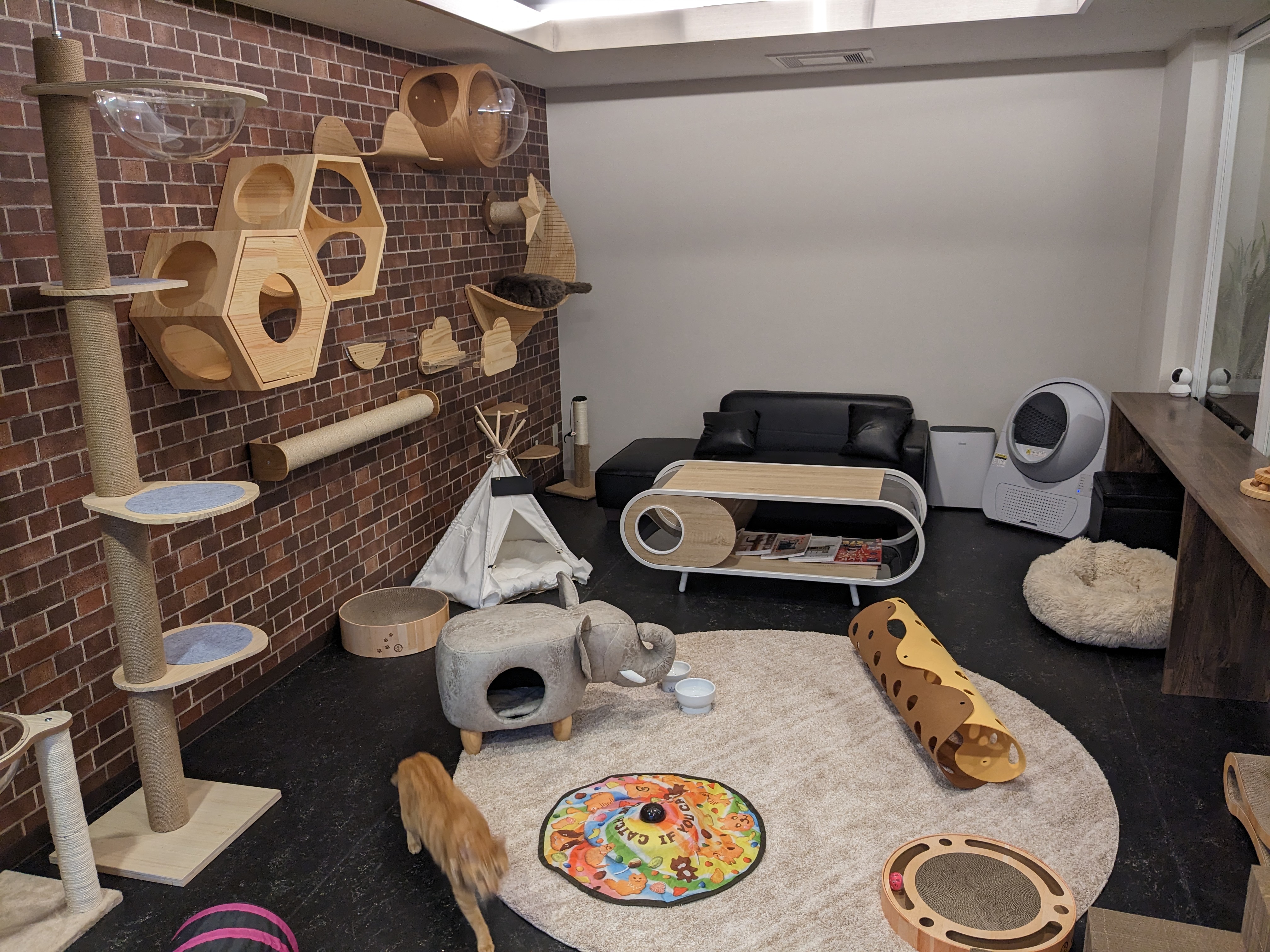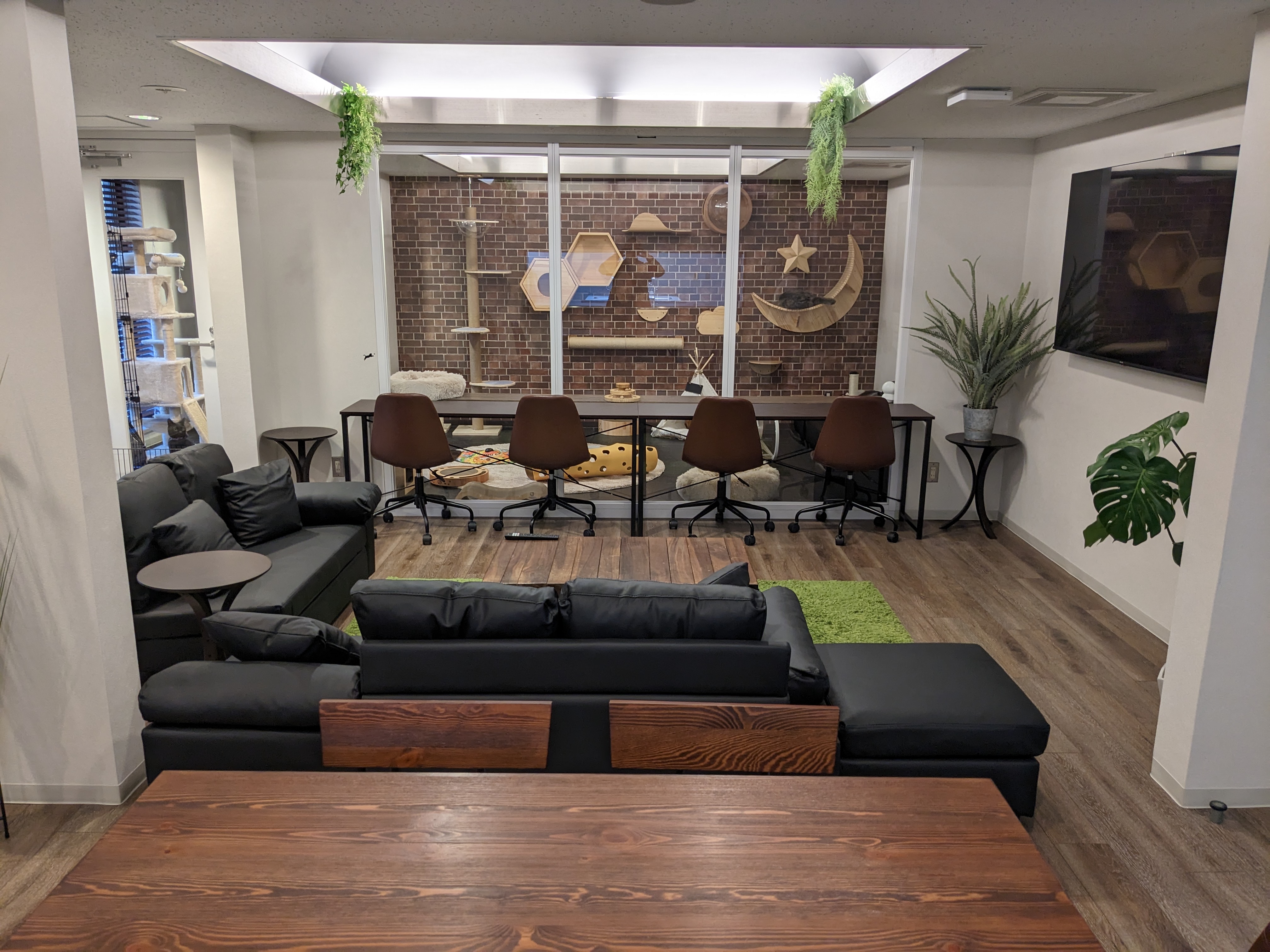 猫ラウンジは、入居者が猫を連れてきて遊ばせることのできる、猫と触れ合える空間です。