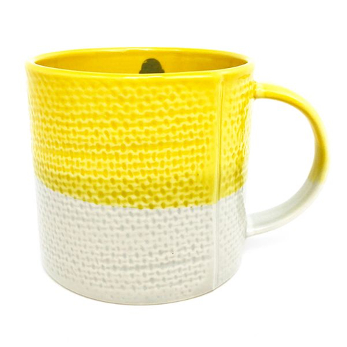 実は、グラデーションシリーズにはマグカップもあるんです!黄色×白の配色がおしゃれ。麻布のようなでこぼこのテクスチャが、ナチュラルな雰囲気を演出しています。