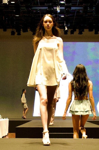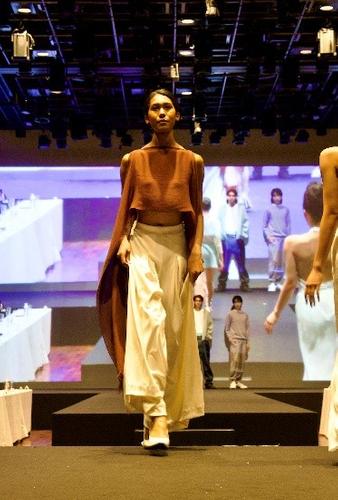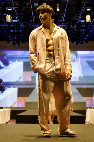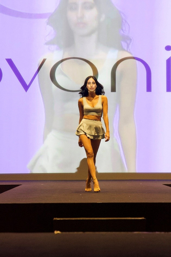 今回のショーでは、「ovonir」の今後発売予定の製品に参考商品などを加え、「ovonir」の提案する新しいライフスタイルを表現したインナーウェア、ナイトウェア、デニムスタイル、ドレススタイルなど男女計10ルックの展示を行いました。