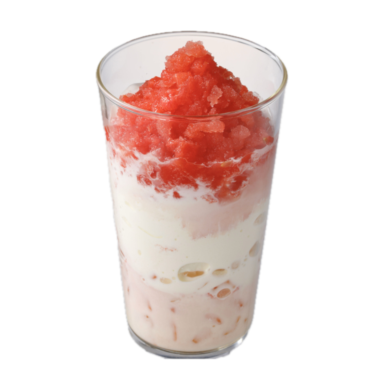 ●商品特長:ソフトクリームと、砂糖を一切加えていないスイカの果実&果汁と、氷を合わせたドリンクです。