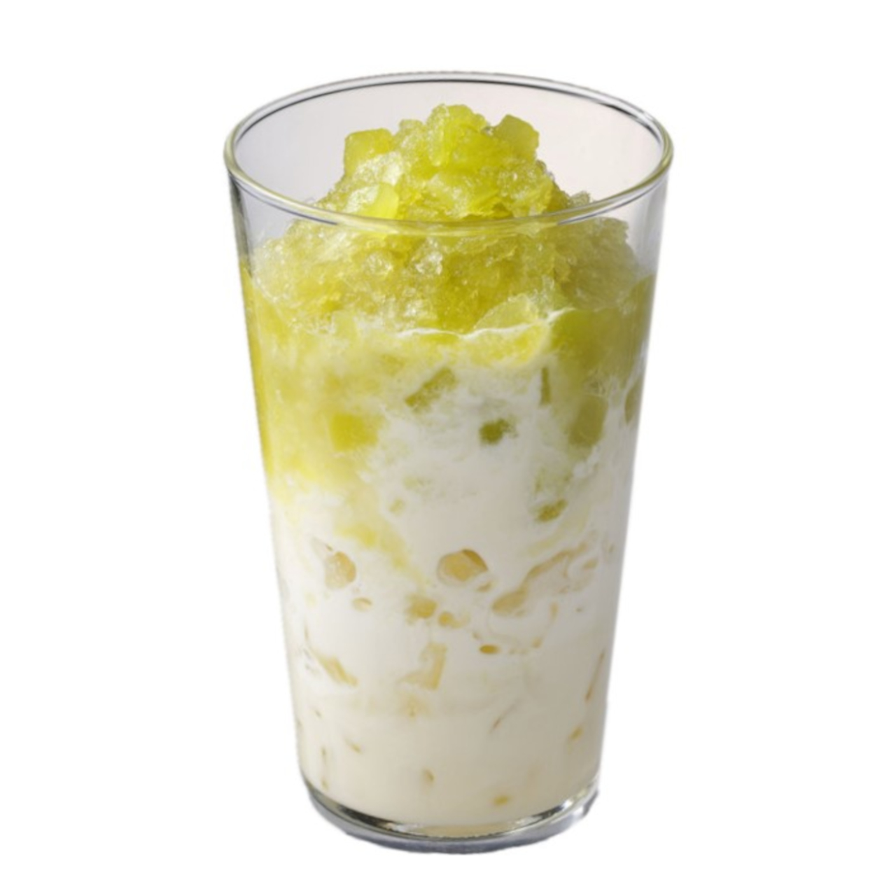 ●商品特長:ソフトクリームと、砂糖を一切加えていないメロンの果実&果汁と、氷を合わせたドリンクです。