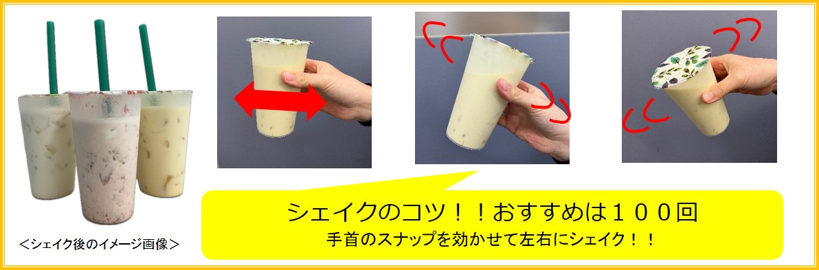 こころのままに、左右にふりふり♪お好みの回数でストップ!あとは、ストローで混ぜて、微調整。