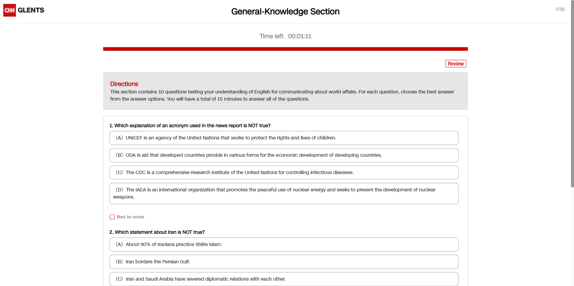 英検®1級のリスニング・リーディングの練習として受験してみましたが、動画視聴問題や語彙問題、国際教養セクションと盛りだくさんで楽しめました。