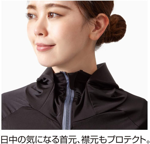 ・大きめのツバ付きフードで頭からフェイス、首周りをガード。