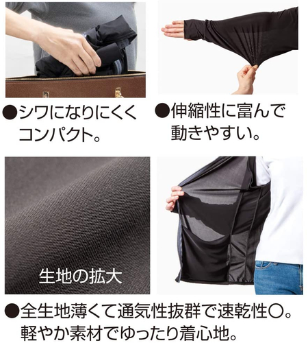 ・全生地薄くて通気性抜群で速乾性も良い。軽やか素材でゆったり着心地。