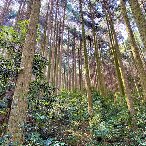 森林の成長過程で密集化する立木を間引く過程です。木材は再生可能なサステナブル素材であり「植える→育てる→伐採→植える」と国内で資材を有効に活用できます。間伐材を使用することにより地球温暖化、土砂崩れ、生物多様性、働き手の少ない林業への貢献ができます。