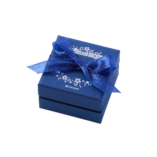 シンプルなトップの表面には男子アイドルユニット「WITH」のカラーストーン3石をセットし、裏面には、「IIZE!」を刻印しました。エンドチャームには名前と月アイコンが刻印されています。