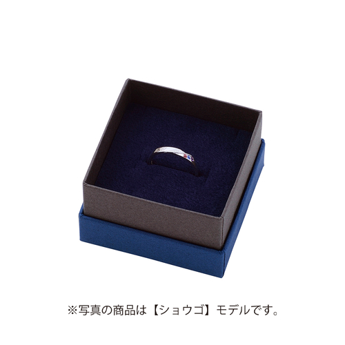 男子アイドルユニット「WITH」のカラーストーン3石をセットした平打ちフォルムの側面には、「IIZE!」をさりげなく刻印。内側には名前刻印を施しました。