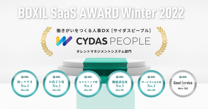 CYDAS PEOPLEが「BOXIL SaaS AWARD Winter 2022」タレントマネジメントシステム部門で「Good Service」ほか5つのNo.1に選出