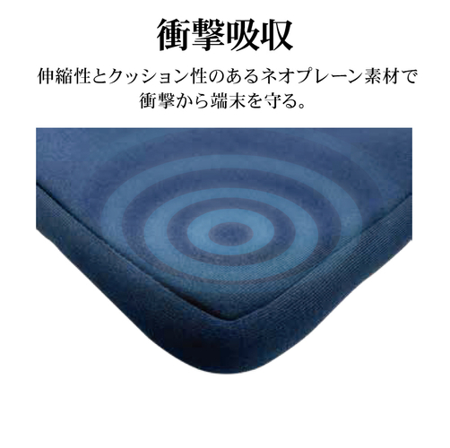 伸縮性とクッション性のあるネオプレーン素材で衝撃から端末を守る。