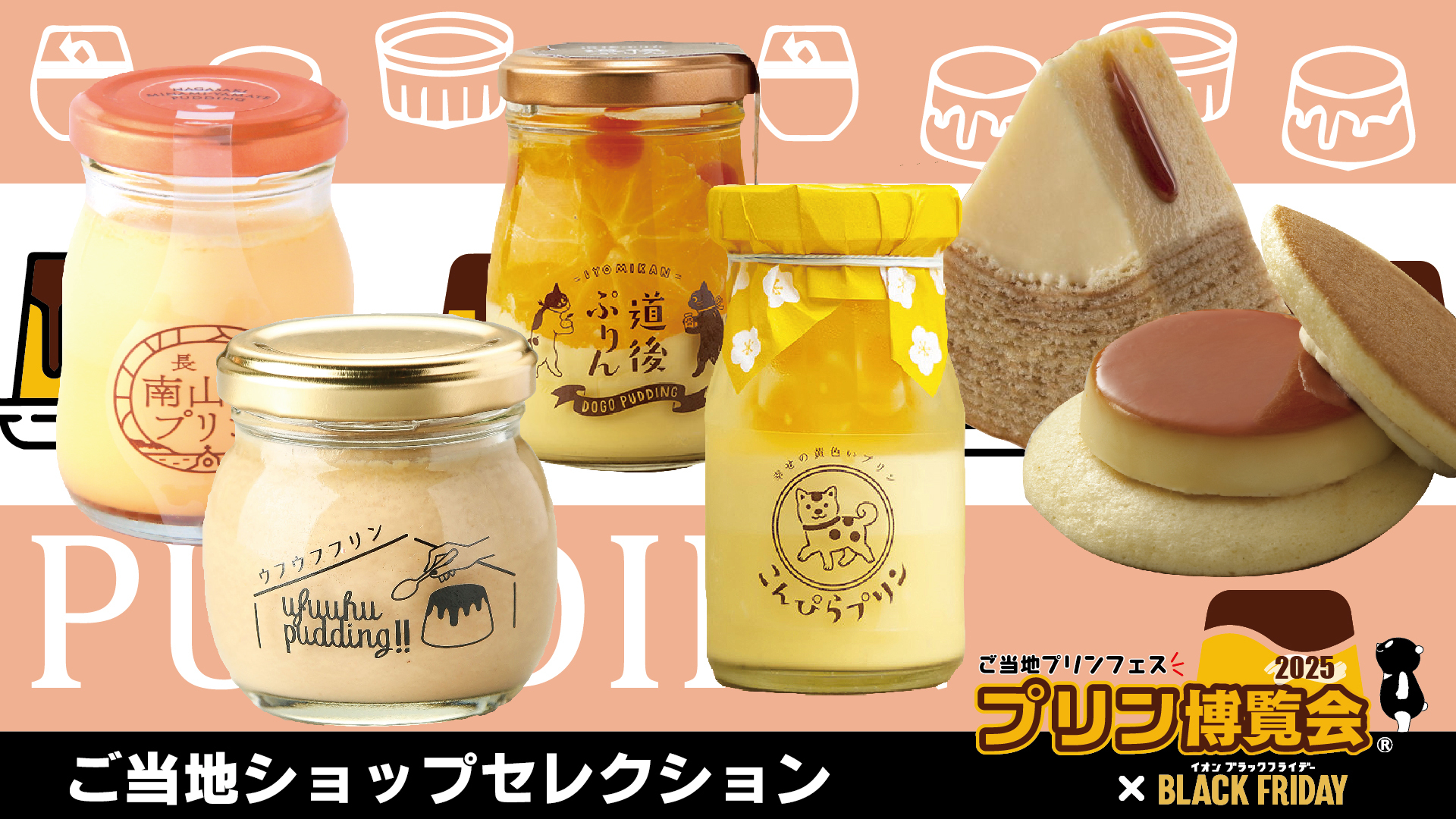 国民的デザート「プリン」の祭典。総勢80種超の各地のプリンが集結。 2025年11月20日(木)~30日(日) イオンレイクタウンのブラックフライデーとコラボ開催。