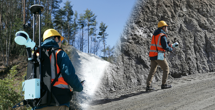 『D-H100』は、このSLAM技術を活用することで、狭所や細部、複雑な構造物であっても“歩くだけ”で迅速に3Dデータを取得できます。このような現況測量はもちろん、森林や山間部、災害現場など、他の3D計測手法では困難な現場や、構造物の計測、短時間で広範囲を取得したい場合など、現場の状況に応じて柔軟に対応できるよう、ハンディタイプとバックパックタイプ(オプション)の2種類をラインアップしました。あらゆる現場で3Dデータの取得を可能とし、現場の“見える化”を支援します。