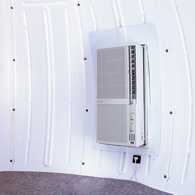 エアコンと壁面パネルを一体化したドーム専用キット。ユーザーからの多くの要望を受けて、冷暖房が可能になりました。場所をとらず、すっきりした空間を確保します。