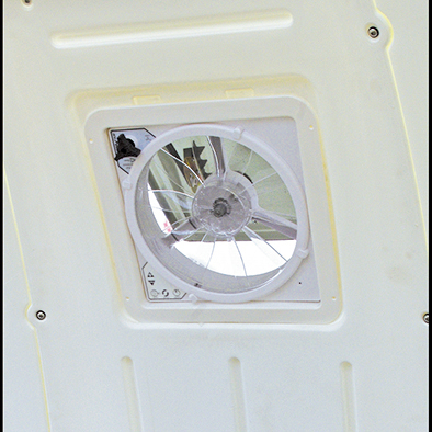 パネル一体型で風向切替ボタン付き(内→外・外→内)、サーモスタット付のパワフルな10段階調整可能なベンチレーターです。