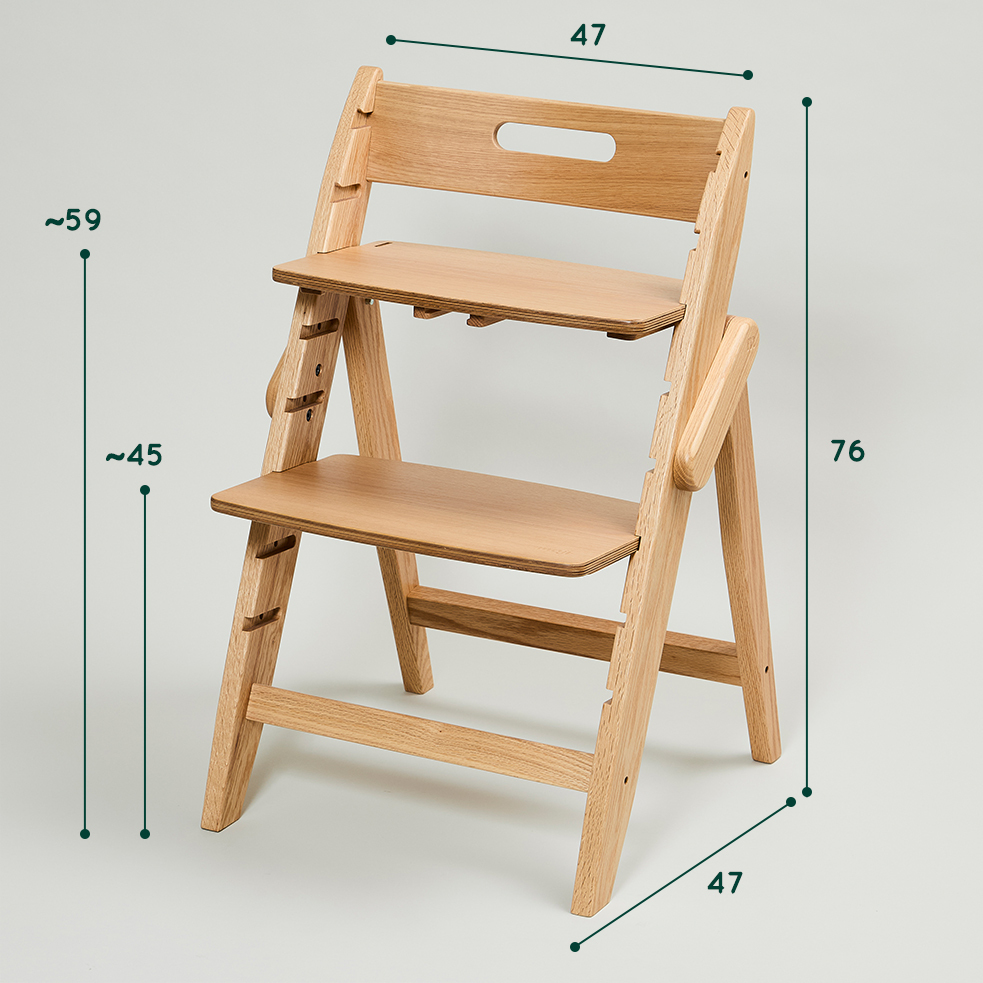 組み立てにも高さ調節にも工具不要。小さなお子さまから大人まで家族みんなでシェアすることができ、折りたたみ・自立もします。コンパクトサイズなので省スペースで設置可能。オプション無しで子ども用踏み台としても使用でき、カウンターチェアやキッチンの腰掛けとしても。使う人と用途に長く、幅広く寄り添います。