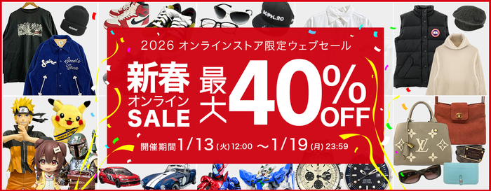 買取王国では、オンラインストア限定で2026年1月13日(火)12:00から2026年1月19日(月)23:59の期間にオンライン限定ウェブセールを開催いたします。期間中は対象商品MAX40%OFFとなる大変お得なSALEになります。