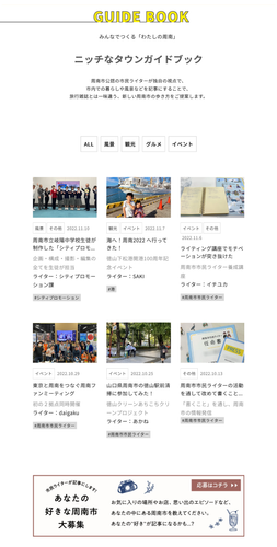 このWEBサイトでは、周南市公認の市民ライターによる、市内での暮らしや風景などの取材記事をまとめています。