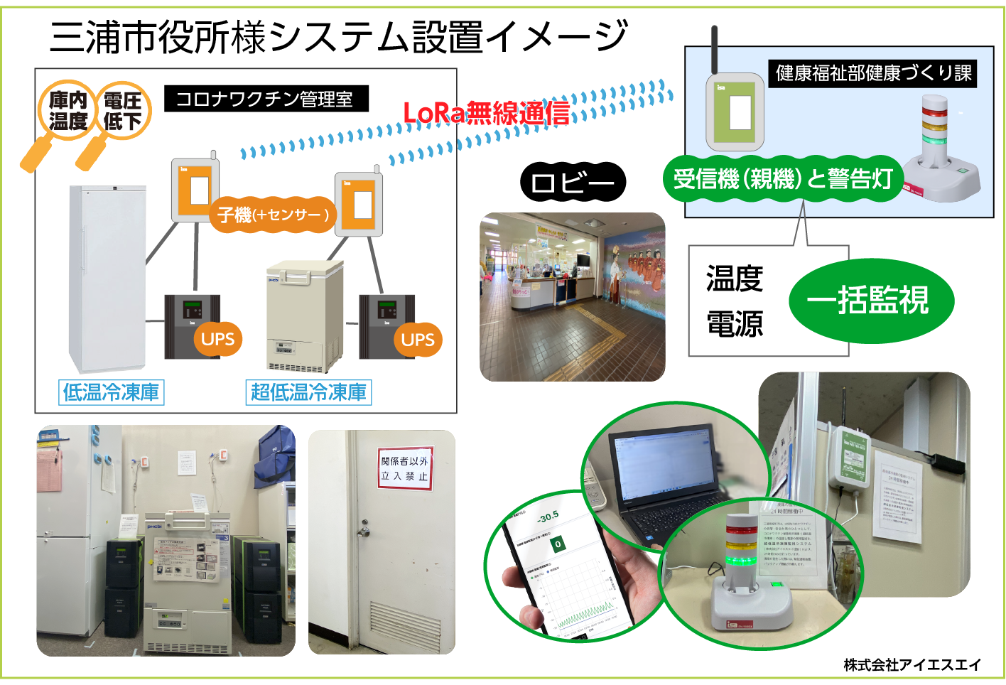 株式会社アイエスエイ(略称:ISA、東京都新宿区新宿、代表取締役社長:柳原 康慈)は、コロナワクチン保管用冷凍庫の温度異常と電源異常を自動で監視するシステム「超低温冷凍庫監視ソリューション」を活用し、ワクチン廃棄の未然防止対策を実施している、神奈川県三浦市役所様の取り組みを当社HP上で2022年3月25日に公開します。温度と電源の両方を監視するシステムの導入は、全国的にも数少ない取り組みです。