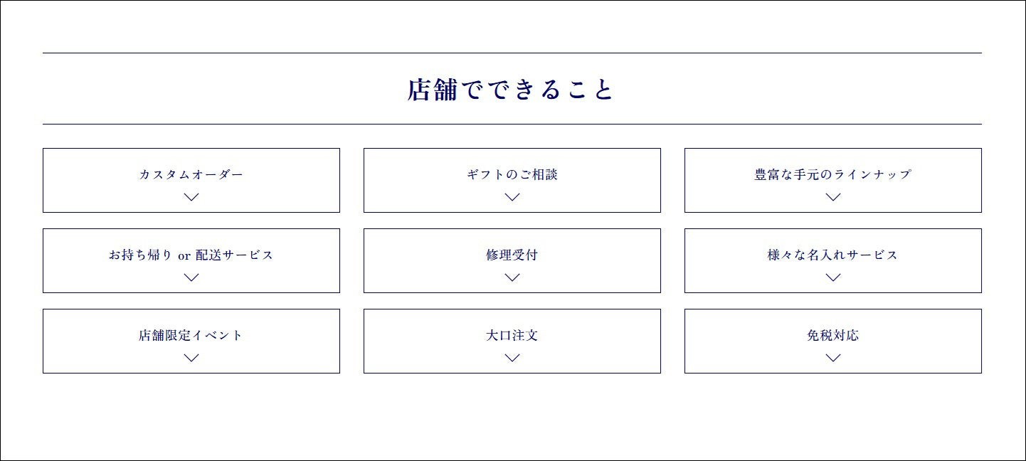 新規ページでは、上記サービスのほか、「ご予約システム」や「アクセス」といった店舗にお越しいただくにあたり必要な情報もわかりやすくご案内しております。