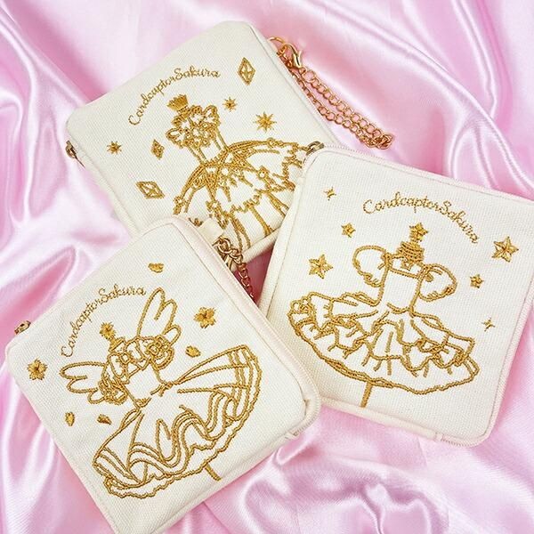 「カードキャプターさくら」クロウカードのスクエアポーチは、ピンクでカラーリングされているようですね。やわらかい色合いで表現されているので、可愛さの中にもどこか大人っぽさを感じられるデザインです。さくらの世界観がぎゅっと詰まった、ファンにはたまらないアイテムですね。