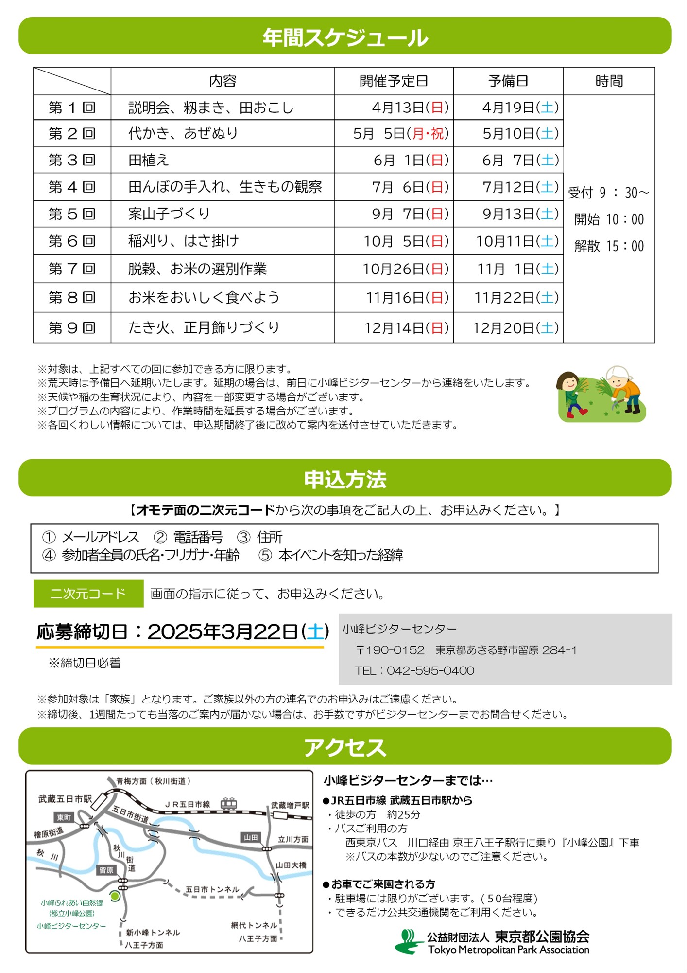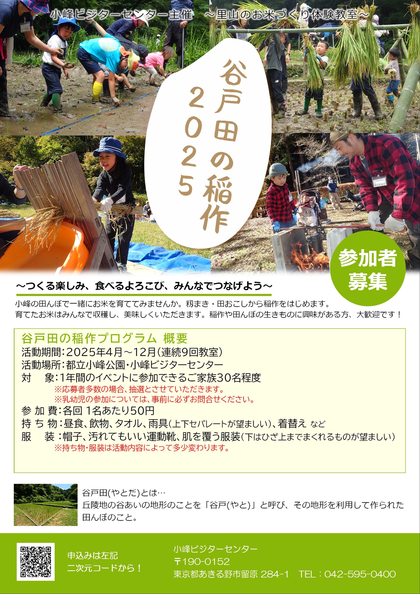 お米を自分で育ててみよう!小峰公園で米作りの年間体験イベント「谷戸田の稲作2025」が4月13日(日)スタート!参加ご家族を募集しています。