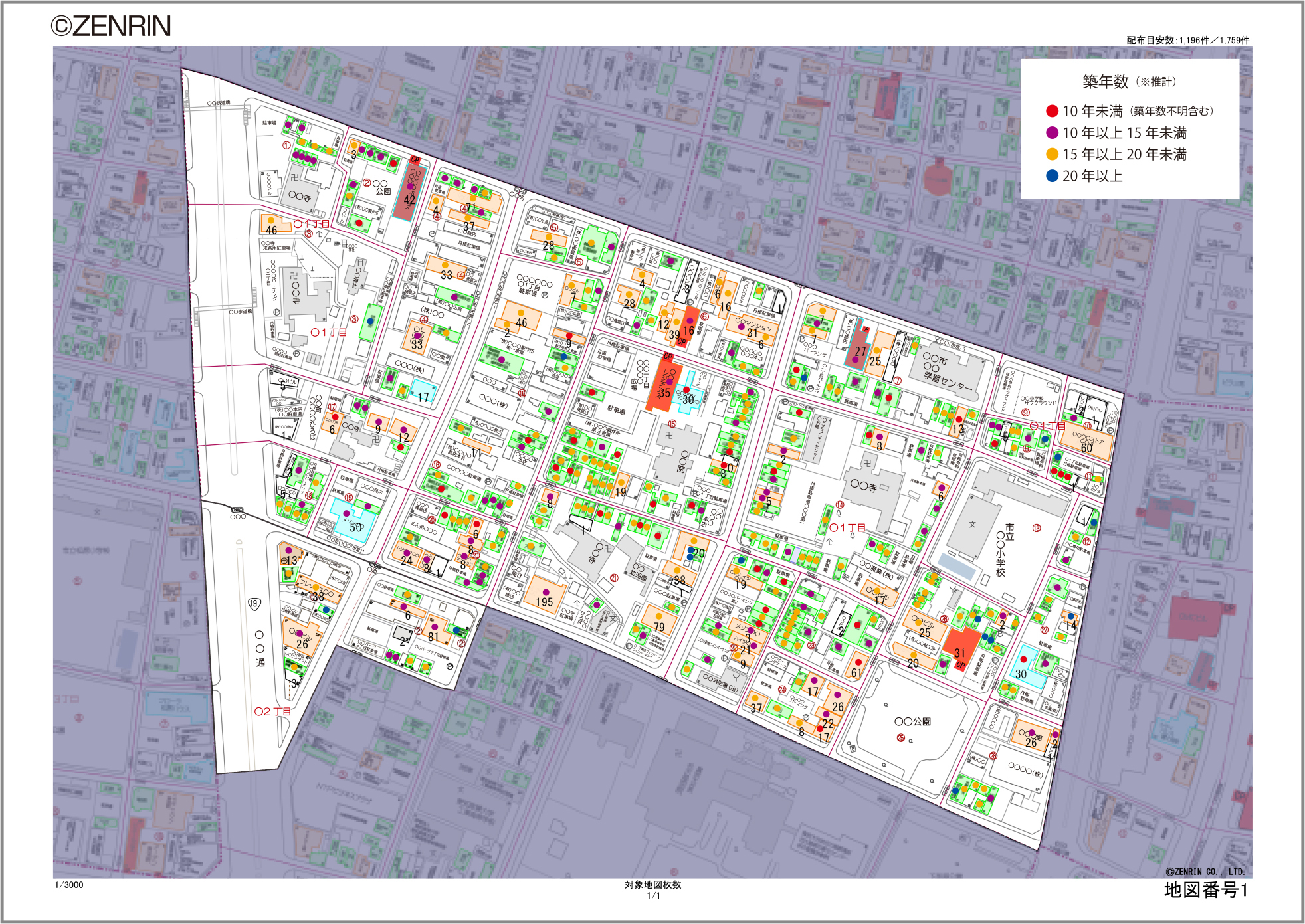 当社では、地図上に「賃貸・分譲」を明確に分けて表示させることで、100%正確な選別ポスティングを実施することが可能です。