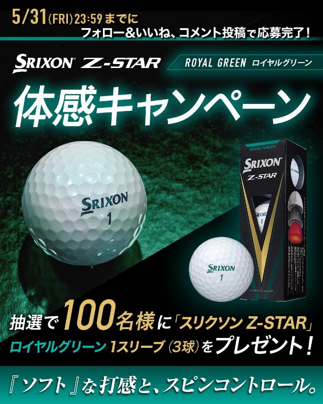 住友ゴムグループの(株)ダンロップスポーツマーケティングは、ダンロップゴルフ公式インスタグラムの「@dunlopgolf_official」をフォロー&いいね、コメント投稿をした方の中から抽選で100名様にゴルフボール「スリクソン Z-STAR」ロイヤルグリーンを1スリーブ(3球入り)プレゼントする「スリクソン Z-STAR ロイヤルグリーン」体感キャンペーンを実施しています。