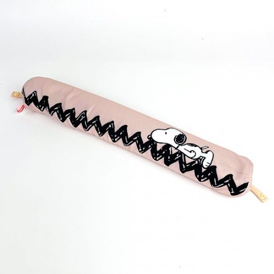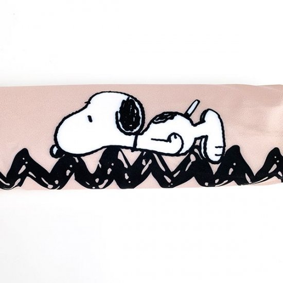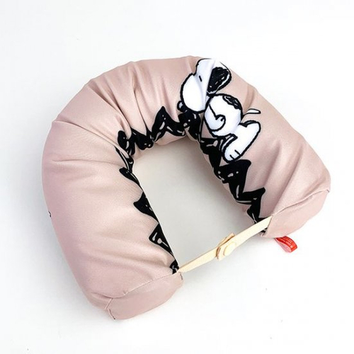 こちらがその、ネック&リストクッションです。ベージュの背景に寝そべりポーズのスヌーピーのデザイン♪