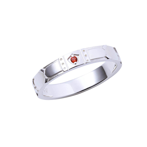 TVアニメ「魔王学院の不適合者」に登場するサーシャ・ネクロンをイメージしたリングです。表面は魔王学院の制服を取り込み、イメージカラーストーンをセット。内側にはサーシャの校章と名前刻印を施しました。ユニセックスに身につけられる、平打ちフォルムのデザインです。