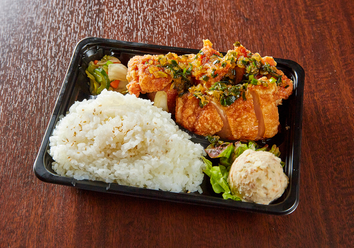 ご自宅や職場でも気軽に楽しめるお弁当!しょうが風味のももザンギ(北海道ご当地唐揚げ)にたっぷりかける特製ニラだれソース。